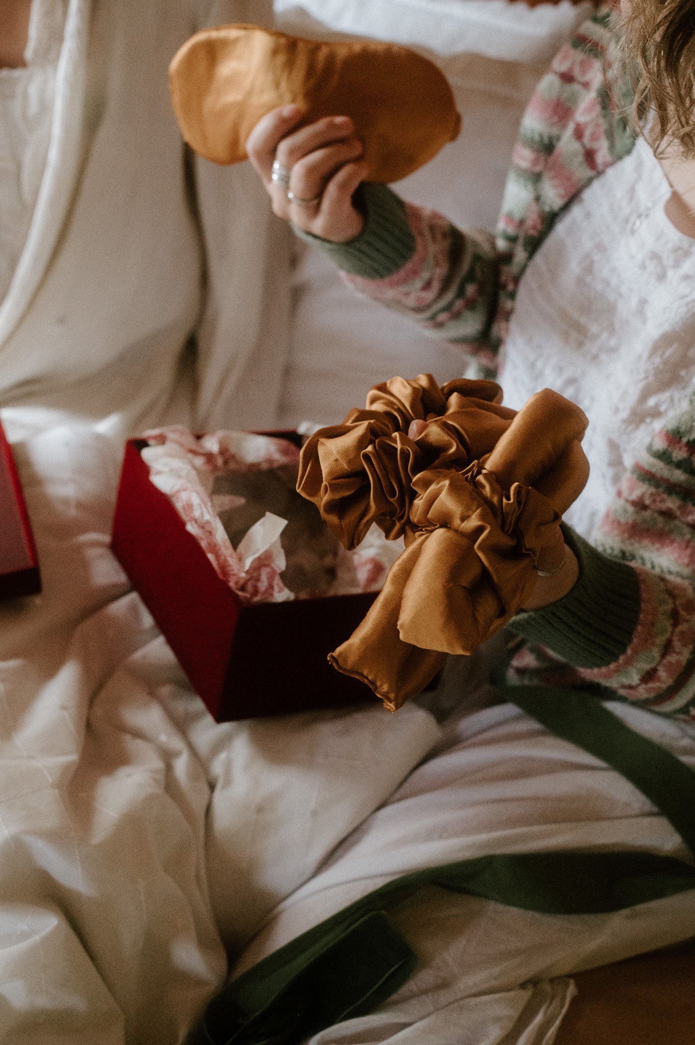 Crafted in small batches, each scrunchie is sewn with care using generous lengths of silk for extra volume and that signature ‘scrunch’. Gentle on hair and kind to strands, it’s perfect for both styling and protecting your locks — whether you’re heading out or winding down.