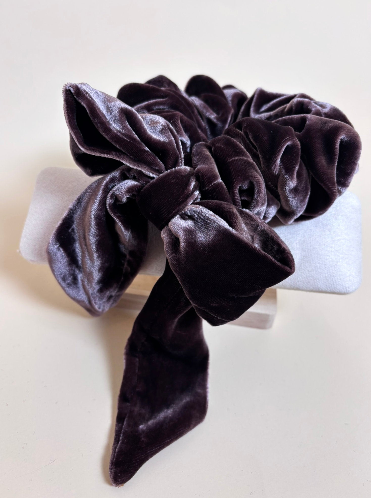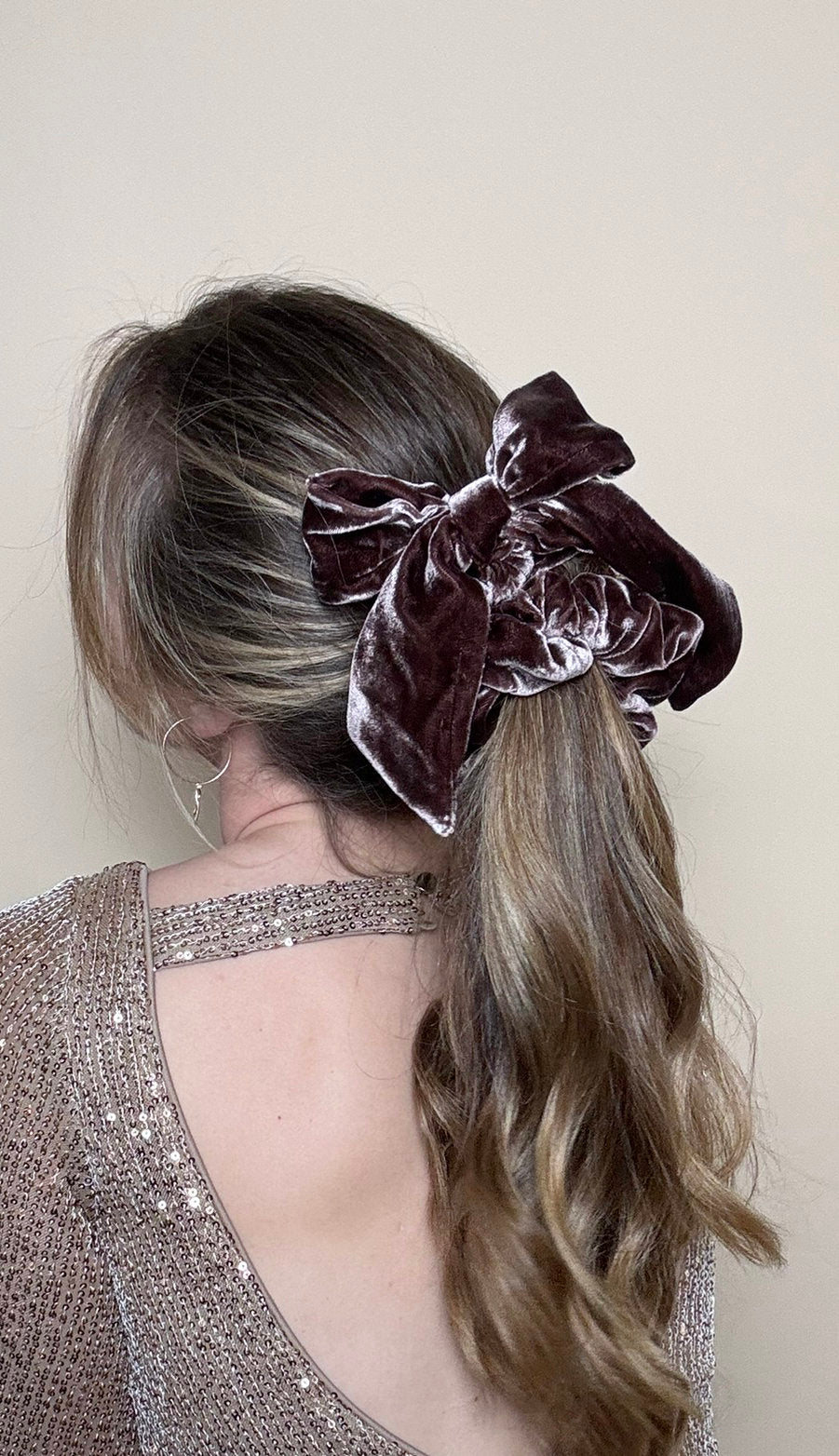 Chocolate Silk Velvet Scrunchie with detachable bow - Large