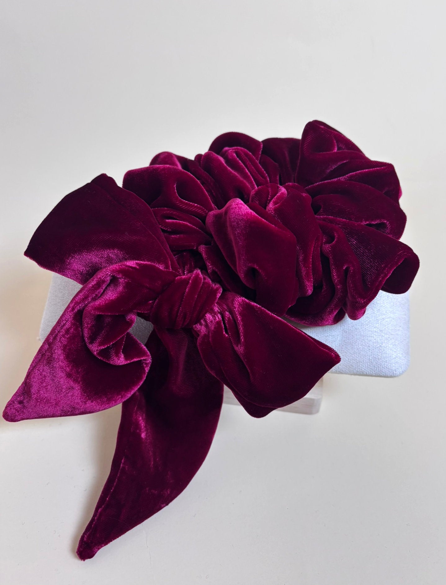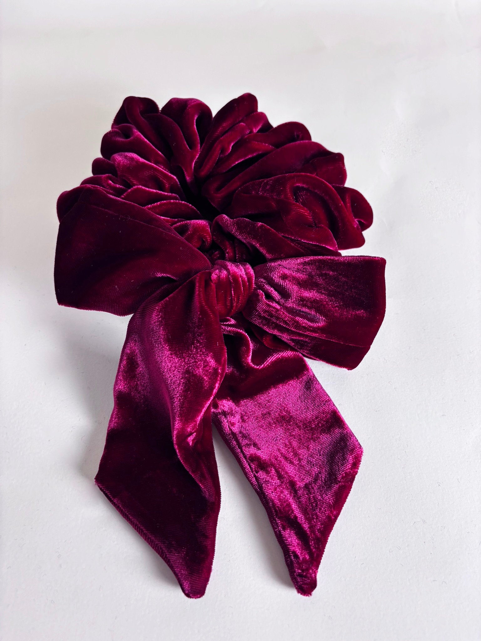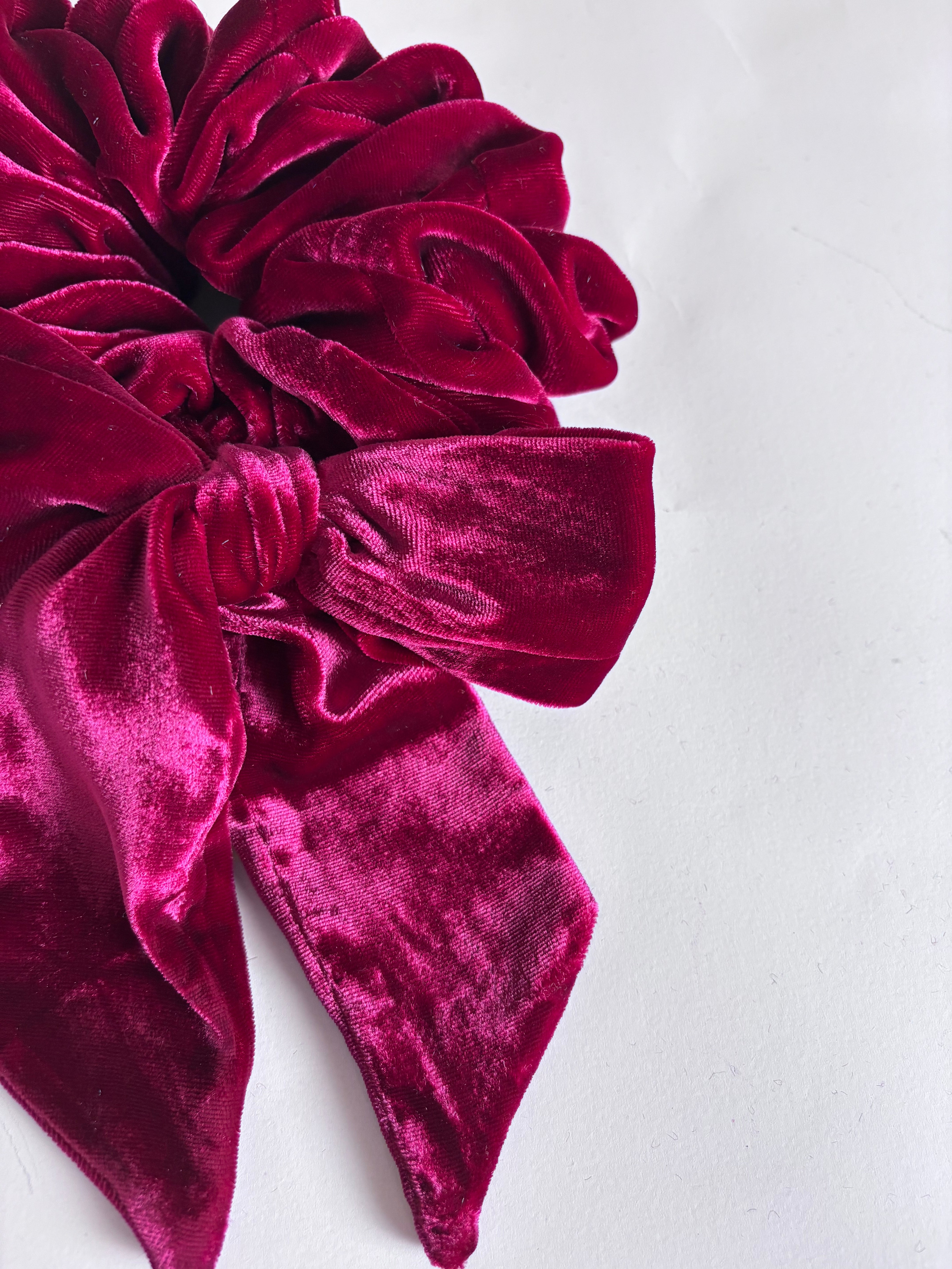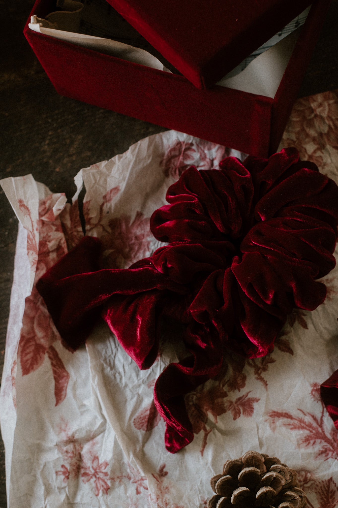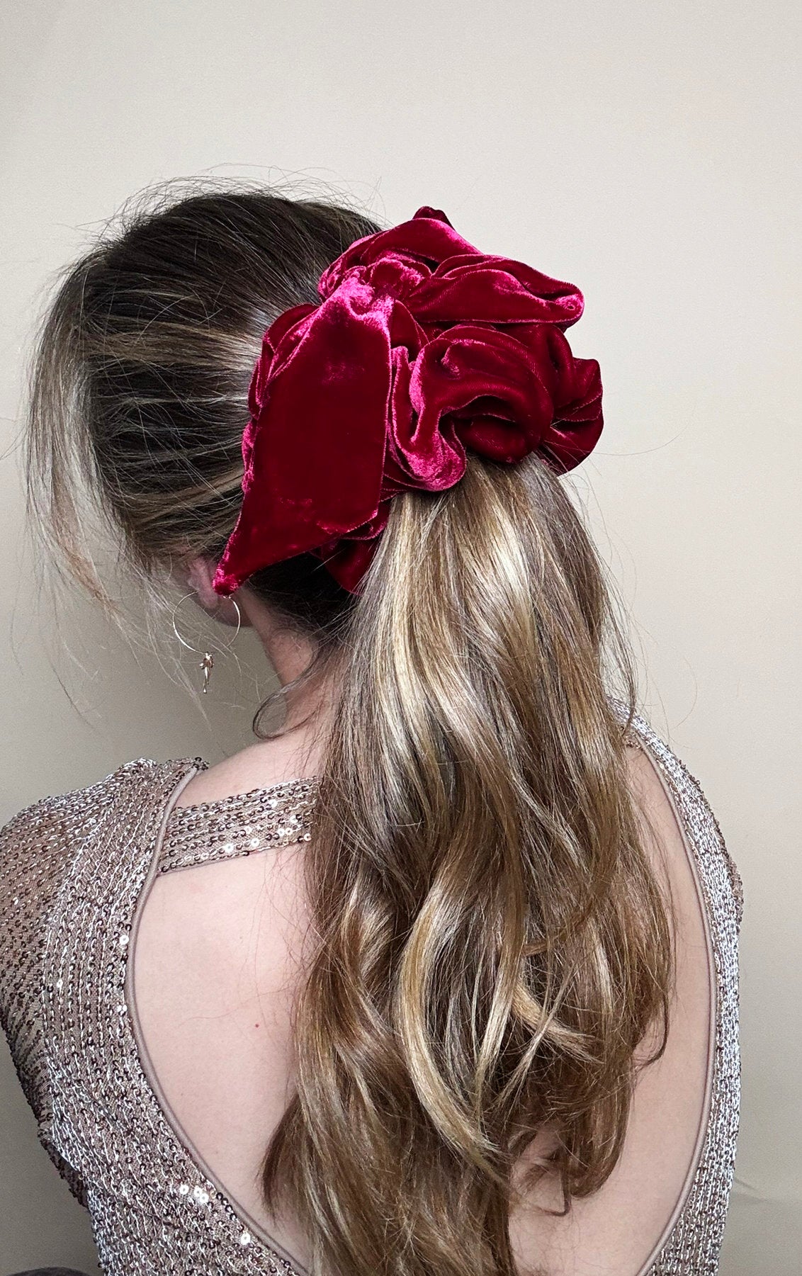 Christmas Red Silk Velvet Scrunchie with detachable bow - Large