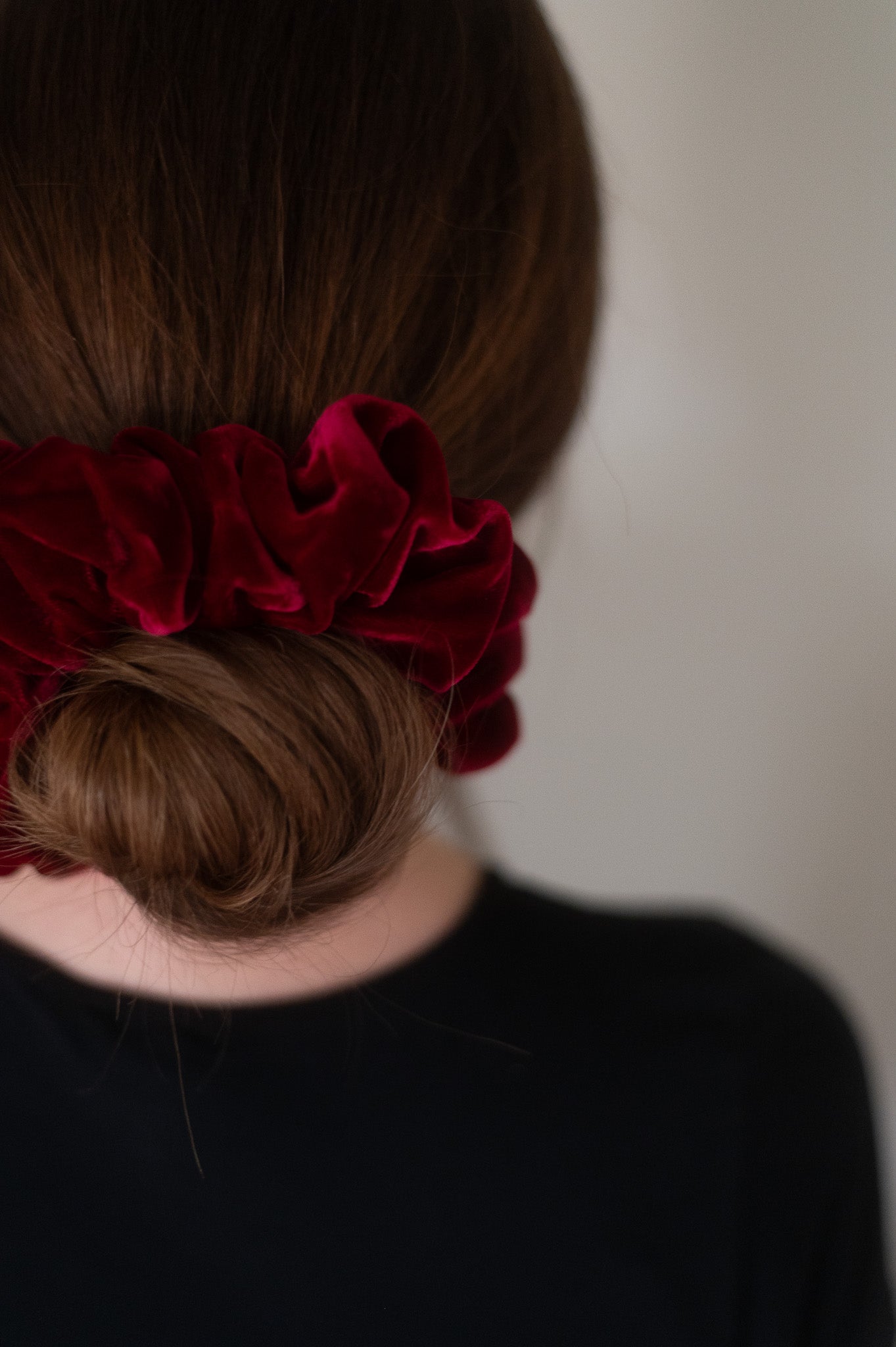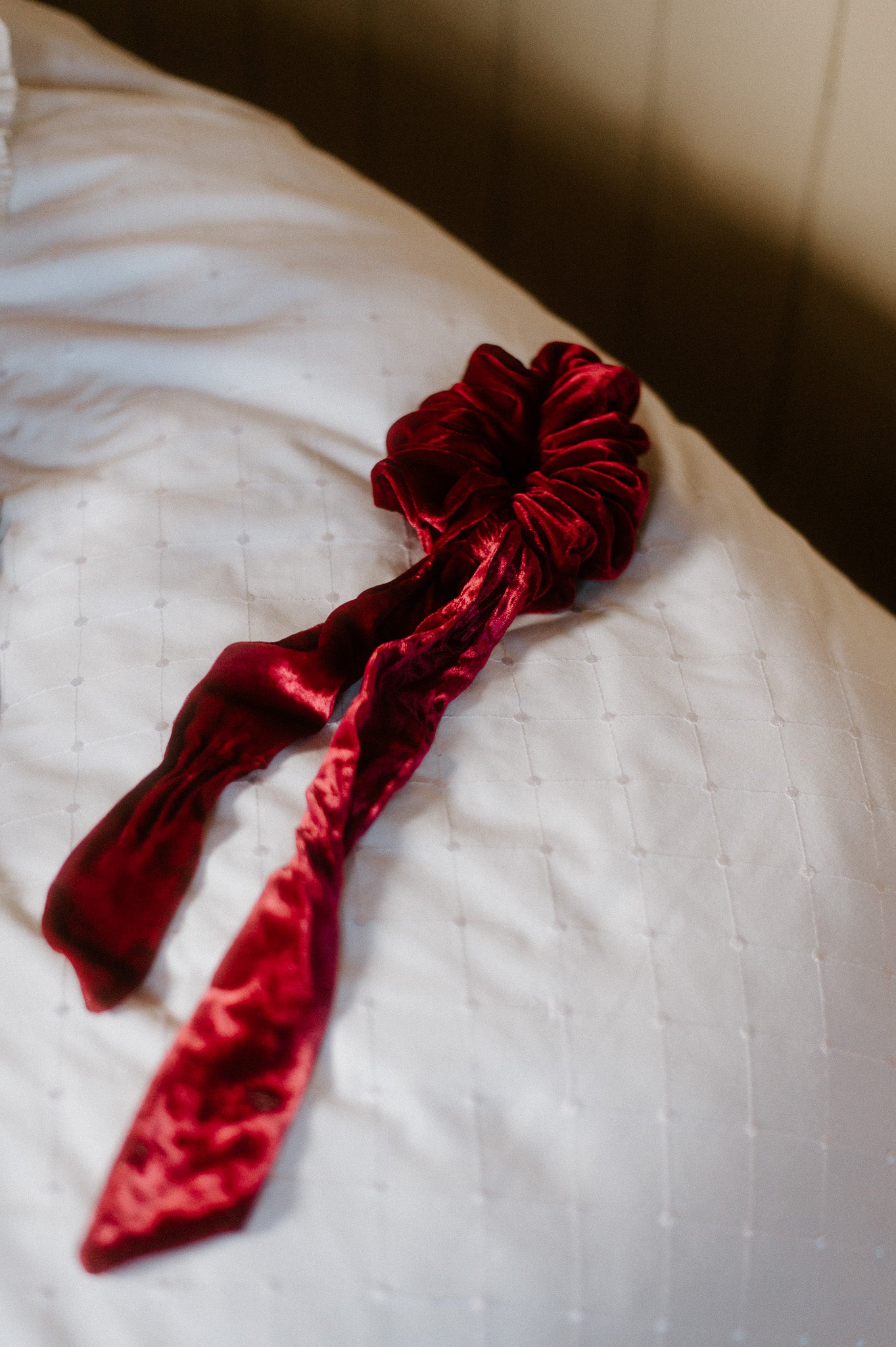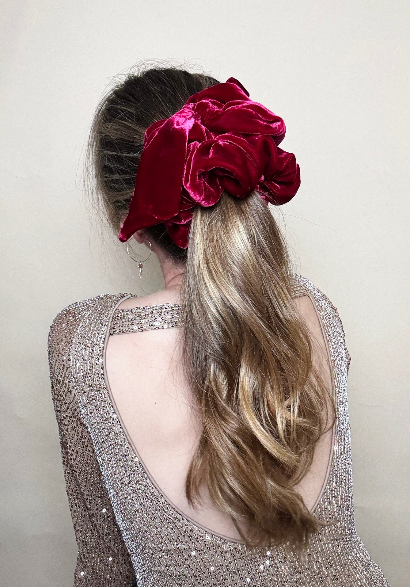 ✨ Tie the bow around it for a chic, romantic finish — or re-tie it to create your own bow shape. You can also tie the bow around your hair without the scrunchie for another romantic, feminine look.