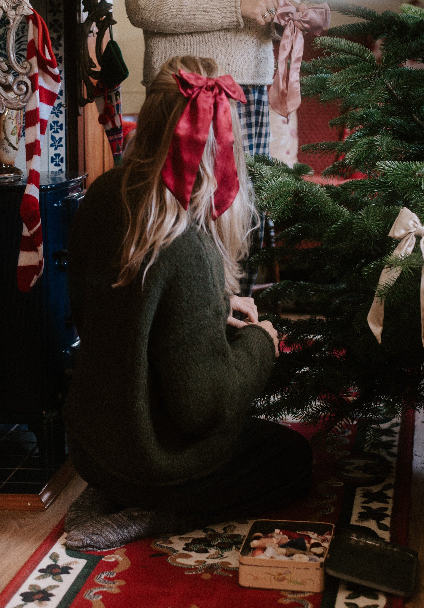 Made from pure 19 momme charmeuse mulberry silk, this bow strikes the perfect balance — not too big, not too small. Its flattering mid-size silhouette (approx. 6.5" at it's widest point x 10.5" at it's longest) makes it ideal for slipping into a half-up style, tucking into a low bun, or adding charm to a loose ponytail.